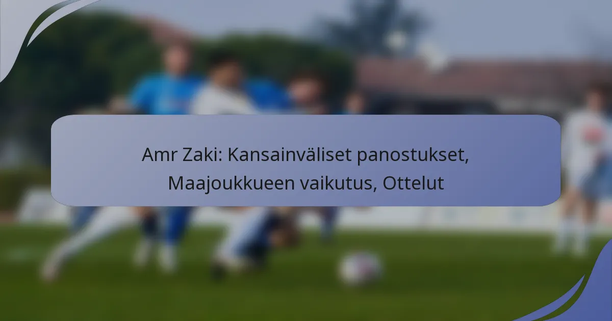 Amr Zaki on tehnyt merkittäviä panoksia kansainväliseen jalkapalloon, erityisesti esityksillään Egyptin maajoukkueessa. Hänen maalintekotaidot ja vaikutus suurissa turnauksissa ovat vahvistaneet hänen mainettaan keskeisenä pelaajana Egyptin jalkapallohistoriassa.